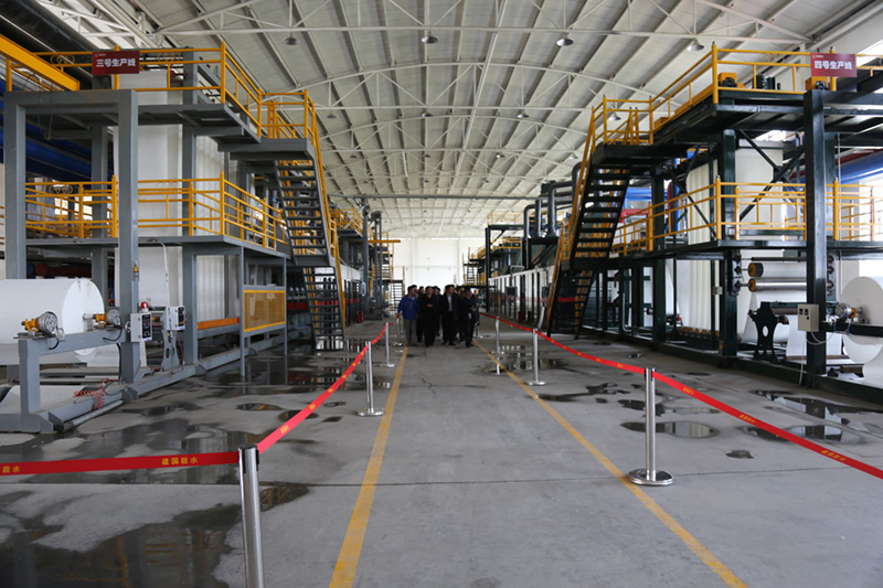 建國偉業(yè)望都生產(chǎn)基地占地二百余畝,建筑占地面積五萬余平方米,總建筑面積九萬多平方米,并建有材料研究所,國家級實驗室和檢測中心,生活辦公環(huán)境舒適,是現(xiàn)代化的花園式工廠。緩緩駛?cè)胪忌a(chǎn)基地的大門,映入眼簾的便是高山流水,花壇盆景,藤蘿翠竹,點(diǎn)綴其間。