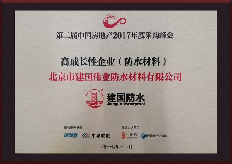 2017年12月7日,由中國(guó)建筑防水協(xié)會(huì)主辦的《全國(guó)建筑防水行業(yè)質(zhì)量提升工作大會(huì)暨2017年建筑防水行業(yè)年會(huì)》在??谡秸匍_。本次會(huì)議對(duì)2017年防水行業(yè)取得的成績(jī)和質(zhì)量提升方面面對(duì)的問(wèn)題、挑戰(zhàn)進(jìn)行了詳細(xì)解讀,對(duì)質(zhì)量提升提出了新的要求和建議,并對(duì)質(zhì)量提升及科技進(jìn)步企業(yè)進(jìn)行表彰。建國(guó)偉業(yè)集團(tuán)榮獲“2016-2017年建筑防水行業(yè)先進(jìn)企業(yè)”稱號(hào)。