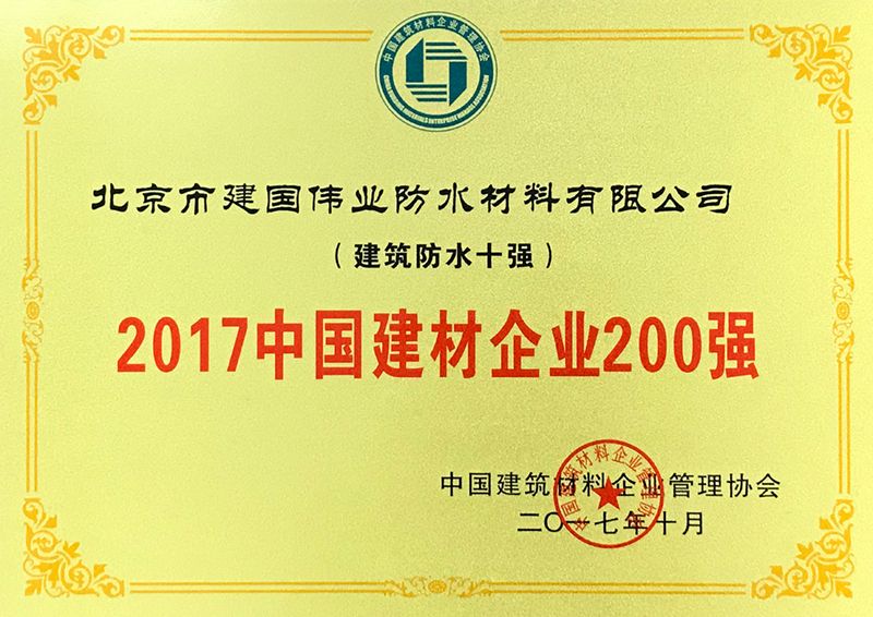 建國(guó)偉業(yè)榮獲“2017中國(guó)建材企業(yè)200強(qiáng)”稱號(hào)